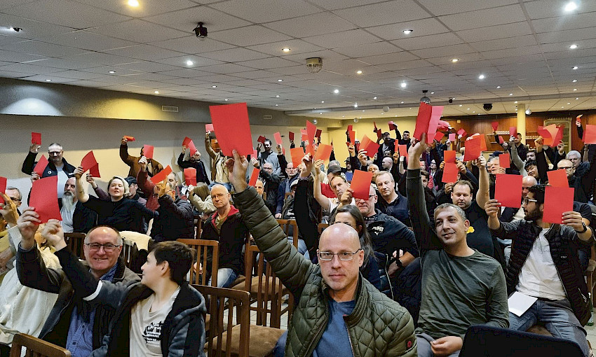 Eine aufgebrachte Versammlung zeigte der Leitung der Lausanner Verkehrsbetriebe (TL) die rote Karte. Denn diese will als Vorbedingung für transparente Verhandlungen zur Verbesserung der Arbeitsbedingungen eine Vereinbarung über Null-Franken-Verhandlungen durchsetzen. Die über 200 Teilnehmenden stimmten auch für die Vorbereitung von Kampfmassnahmen vor Ende Jahr.