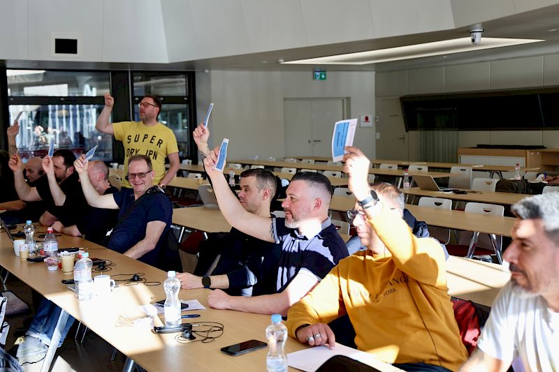 SEV-Vizepräsidentin Barbara Keller hielt zu den Lohnverhandlungen fest, dass der SEV trotz einer sehr geringen Teuerung im Jahr 2025 einige gute und insgesamt akzeptable Ergebnisse erzielen konnte. SEV-Vizepräsident Pablo Guarino erinnerte an die Rolle engagierter und aktiver Sektionen, die die Stärke des SEV ausmachen. Er stellte die noch vorläufigen Ergebnisse der Trapheac-Studie von Unisanté zur Gesundheit in der Busbranche vor. Die endgültigen Ergebnisse werden zwar erst am 24. April veröffentlicht, aber sie werden zweifellos in die Richtung gehen, die der SEV seit Jahren anprangert. Unisanté hat Burnouts und berufsbedingte Erschöpfungszustände untersucht, von denen viel zu viele unserer Kolleginnen und Kollegen betroffen sind. Diese Frage der Gesundheitsbedrohung und der damit zusammenhängenden Rolle der Arbeitsbedingungen führte zu spannenden Diskussionen und einem regen Austausch zwischen den Kolleginnen und Kollegen im Fahrdienst.