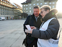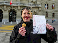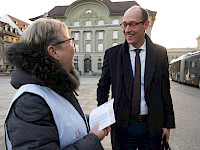 Der SEV hat am 4. März den Mitgliedern von National- und Ständerat Schokolade-Fünfliber überreicht – verbunden mit der Forderung, im regionalen Personenverkehr (RPV) auf Kürzungen zu verzichten. Die im «Entlastungspaket 27» vorgesehenen Massnahmen führen zu Angebotsabbau, höherer Arbeitsbelastung und gefährden Sicherheit sowie Qualität im öffentlichen Verkehr und ziehen Preiserhöhungen nach sich.
