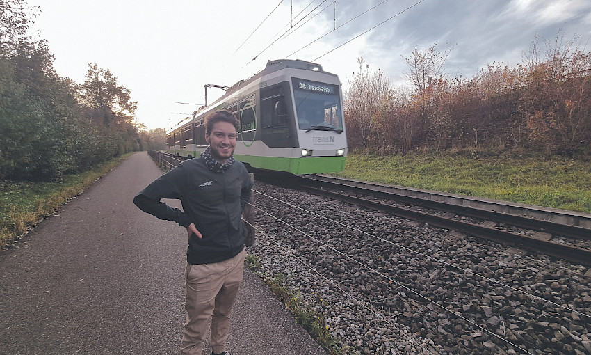 « On me demandait depuis petit ce que je voulais faire plus tard. Je n’en ai jamais eu aucune idée ! », confie-t-il. Il a simplement poursuivi des études supérieures aménagées pour le sport tout en étudiant la distribution électrique. « Logiquement, avec ces études, j’aurais dû travailler dans un bureau comme ingénieur. Mais je n’avais qu’une envie, c’est d’être dehors ! » Fraîchement diplômé en septembre 2020, il entre au service électrique de la SNCF où il travaille deux ans. En parallèle, il continue le sport. Lors d’une course en Suisse, il rencontre Saskia une bénévole qui va devenir sa compagne. Il postule alors à transN, les transports publics de Neuchâtel, où il est engagé en 2022 à la maintenance ferroviaire.