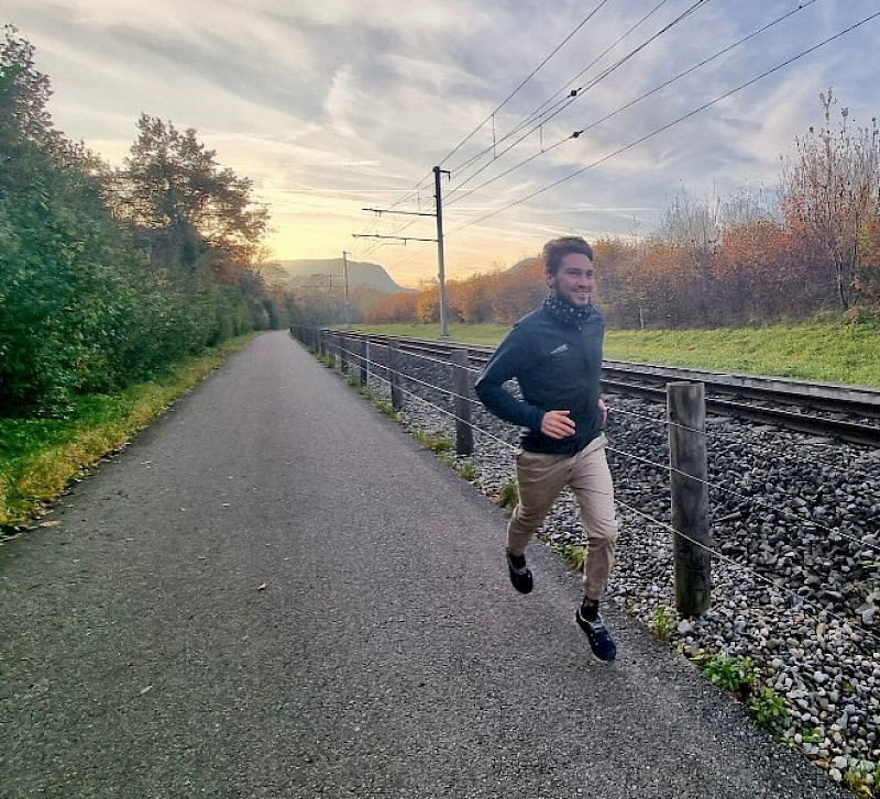 « On me demandait depuis petit ce que je voulais faire plus tard. Je n’en ai jamais eu aucune idée ! », confie-t-il. Il a simplement poursuivi des études supérieures aménagées pour le sport tout en étudiant la distribution électrique. « Logiquement, avec ces études, j’aurais dû travailler dans un bureau comme ingénieur. Mais je n’avais qu’une envie, c’est d’être dehors ! » Fraîchement diplômé en septembre 2020, il entre au service électrique de la SNCF où il travaille deux ans. En parallèle, il continue le sport. Lors d’une course en Suisse, il rencontre Saskia une bénévole qui va devenir sa compagne. Il postule alors à transN, les transports publics de Neuchâtel, où il est engagé en 2022 à la maintenance ferroviaire.