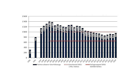 Il comunicato stampa del Consiglio federale sul rapporto sul trasferimento indica che tra il 2022 e il 2024 la quota del trasporto merci alpino su rotaia è scesa del 2,6%, raggiungendo il 70,3%. Per il 2025, si prevede un ulteriore calo. L’associazione di protezione dell’arco alpino Pro Alps (ex Iniziativa delle Alpi) aggiunge che dal 2021 la quota del trasporto su rotaia è diminuita addirittura del 4%, mentre il numero di transiti di camion attraverso le Alpi è aumentato, raggiungendo le 960.000 corse, 310.000 in più rispetto al limite fissato dalla legge di 650.000 camion/anno. Inoltre, fra poche settimane, verrà prematuramente abbandonata l’autostrada viaggiante (RoLa), che finora trasportava circa 70.000 camion all’anno. Molti di questi rischiano di tornare sulle strade alpine, portando il numero dei transiti oltre il milione già nel 2026.