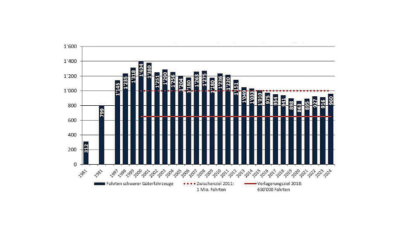 Il comunicato stampa del Consiglio federale sul rapporto sul trasferimento indica che tra il 2022 e il 2024 la quota del trasporto merci alpino su rotaia è scesa del 2,6%, raggiungendo il 70,3%. Per il 2025, si prevede un ulteriore calo. L’associazione di protezione dell’arco alpino Pro Alps (ex Iniziativa delle Alpi) aggiunge che dal 2021 la quota del trasporto su rotaia è diminuita addirittura del 4%, mentre il numero di transiti di camion attraverso le Alpi è aumentato, raggiungendo le 960.000 corse, 310.000 in più rispetto al limite fissato dalla legge di 650.000 camion/anno. Inoltre, fra poche settimane, verrà prematuramente abbandonata l’autostrada viaggiante (RoLa), che finora trasportava circa 70.000 camion all’anno. Molti di questi rischiano di tornare sulle strade alpine, portando il numero dei transiti oltre il milione già nel 2026.
